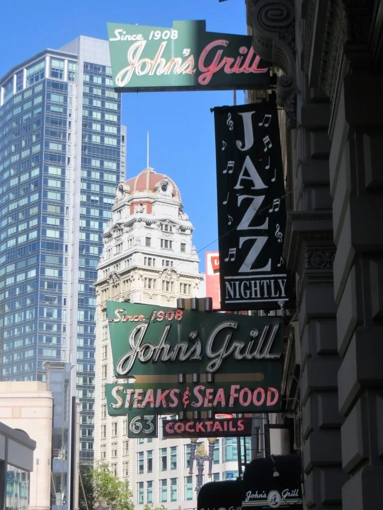 that features literary-themed cocktails, live music and author readings; and John's Grill,