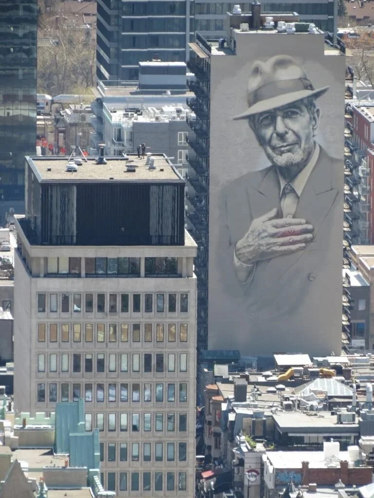 Speaking of music, you can't be in Montreal without thinking of Layton's friend and early disciple Leonard Cohen. Shortly after Cohen's death we attended a spectacular exhibition celebrating his work, at the Musee d'Art Contemporain. His son Adam later hosted a tribute concert at the Bell Centre that we were also lucky enough to go to. Sting was there, and Elvis Costello. K.D. Laing performed a searing rendition of Hallelujah