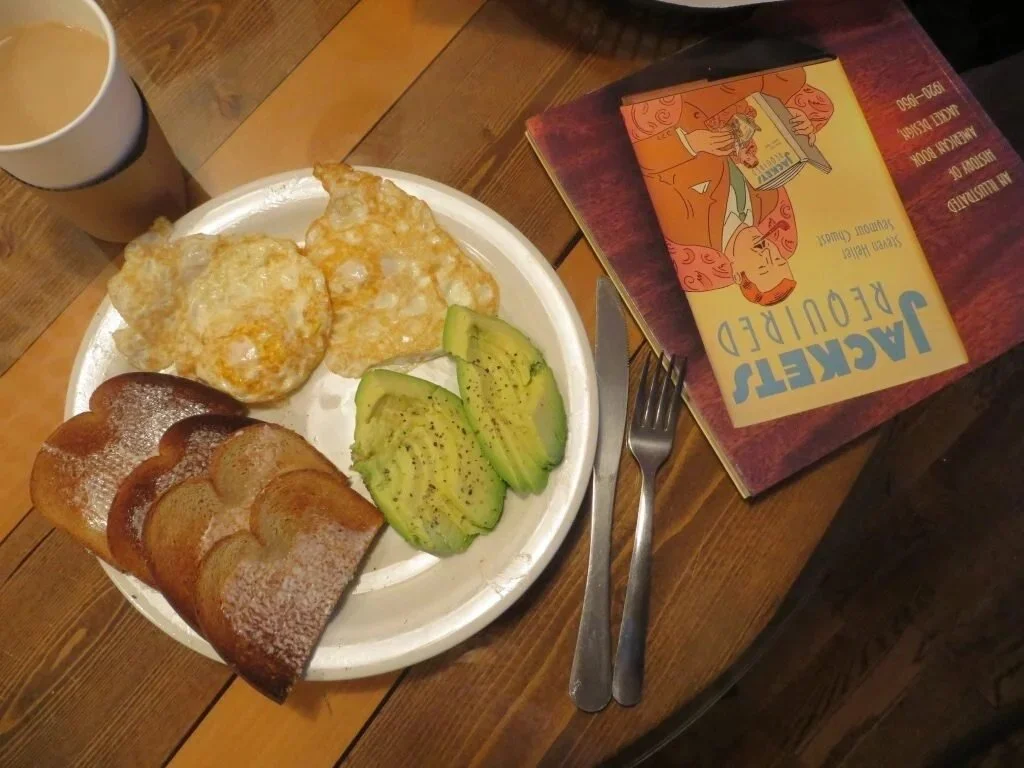 plus it was close to the train station. We parked the car in the covered garage next to it, and got on the train trying to guess which way it would head out of the station. After it started to move we changed our seats accordingly to face forward. We made it into Grand Central Station in a little over an hour, in time for my 11 am interview with Steven Heller. I have several books by him about book and dust jacket design ( this isn't surprising - he's written something like 160 in total over his impressive career). The one I like most - of the ones I own that is - I'd probably like his monographs on Alvin Lustig and Paul Rand more, but they don't at this point sit on my shelves - is called Jackets Required (seen upside down with the avocados above) a survey of U.S. jacket design from 1920-1950. There's a similar one I have by Martin Salisbury with more of a British focus called The Illustrated Dust Jacket 1920-1970 (Thames & Hudson, 2017). It's lovely too. I'll have to wait till I hit the U.K. again to interview him. Still, as I say, both books are excellent. It's great fun looking through all of the various covers, figuring out which you like most, then pondering why. It's also fun to browse the stacks in search of works by your favourite designers. Trick is to go for the books authored by unknowns, that way you get the design without the price tag.