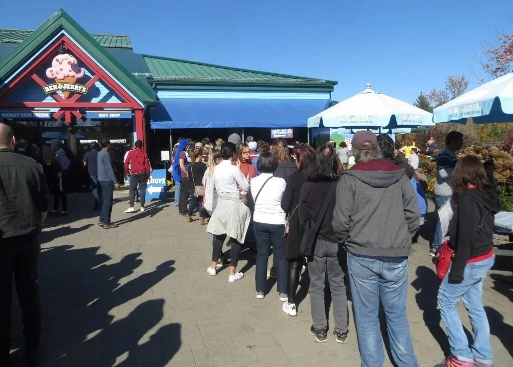 Throw together some Fall foliage and a few vats of ice-cream and you're bound to attract a crowd. I was lucky that my daughters had arrived at the Ben & Jerry's factory in Vermont before I did. I missed having to stand in the lineup.