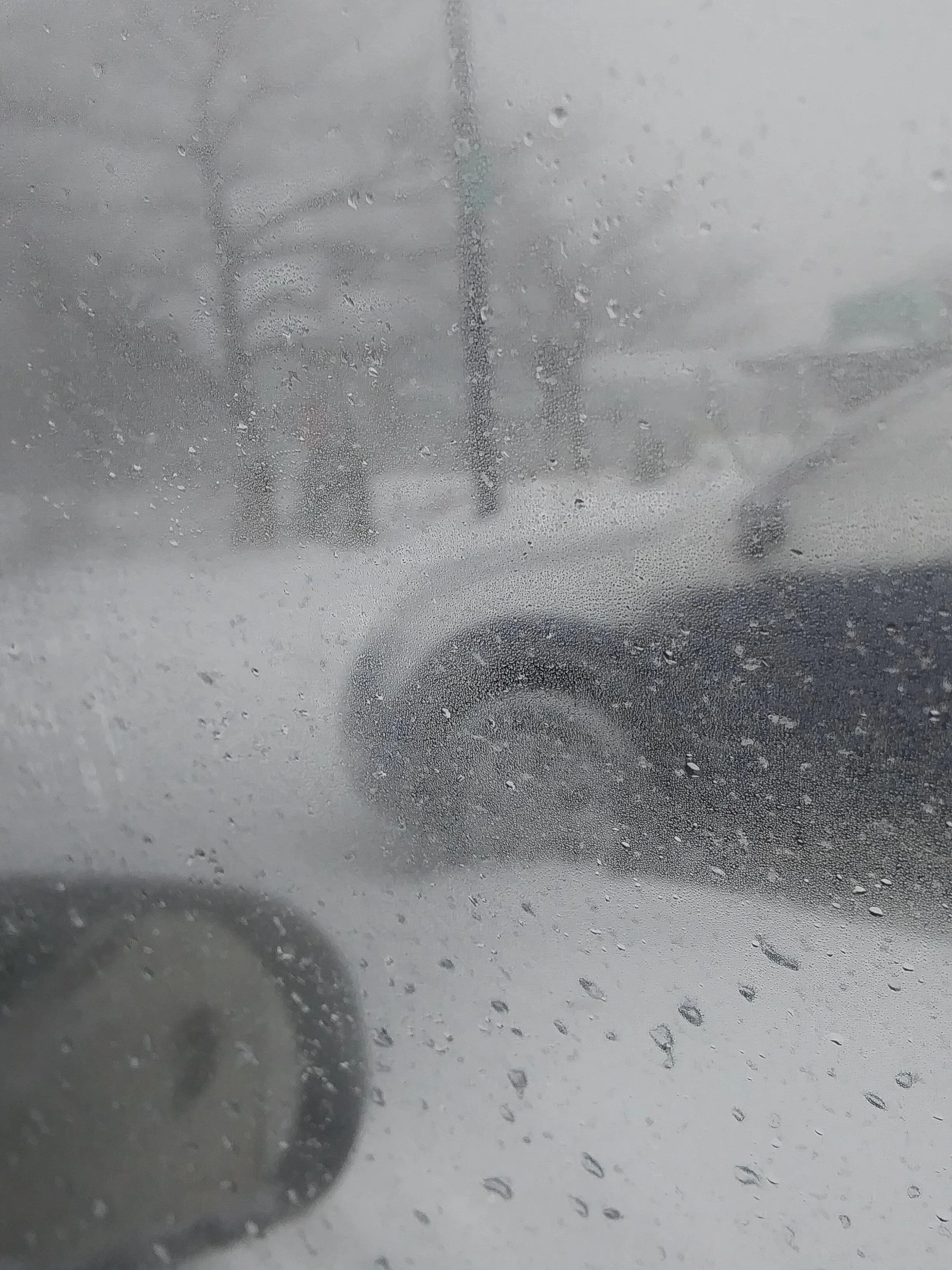 We couldn’t budge. The snow was now appreciable deeper. We ducked into a nearby depanneur and they gave us a shovel. Twenty minutes and a lot of rocking later we finally made it out. The roads were now really dangerous. Visibility was close to zero, so we reluctantly decided to pack it in.