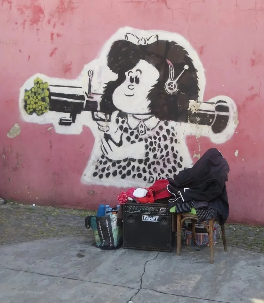 I guess this is more of a mural, but Buenos Aires is celebrated for its graffiti. Here, for example is Mafalda, a tribute to the hugely popular comic book character created here in 1964 by Quino.