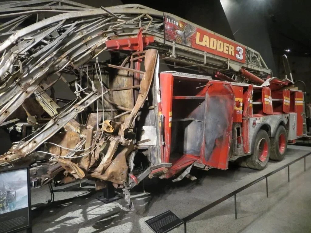 I hopped in a cab - got stuck in rush-hour traffic - then walked the final leg of the journey to the 911 Memorial Museum where I caught up with Dorothy. Can't say I was overwhelmed by it. Lots of cement, some twisted steel, part of an airplane, the wreckage of a fire engine.